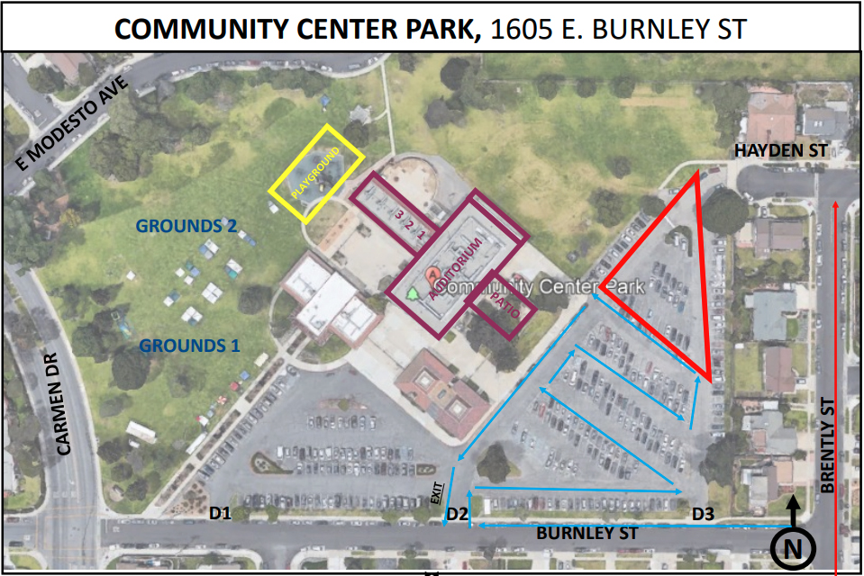 The Camarillo Community Center is located at 1605 E. Burnley St., Camarillo, CA 93010, and is easily accessible from U.S. Highway 101. If you’re coming from the north (Ventura/Oxnard), take Exit 55 for Las Posas Road, turn right onto Las Posas, and drive about 1.5 miles. Then, turn left onto E. Burnley Street — the center will be on your right.