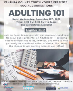 ¿Eres un joven adulto interesado en aprender a desenvolverte con confianza en la edad adulta? Inscríbete hoy mismo para asistir al curso Social ADULTING 101, presentado por Ventura County Youth Voices.