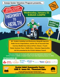 La Agencia para la Tercera Edad del Condado de Ventura (VCAAA) tendrá un stand en el CSVP Wellness Fest 2026, y el comité de fuerza laboral del Consejo Asesor de la VCAAA organizará una feria de empleo para personas mayores. El evento tendrá lugar el miércoles 21 de enero, de 9:00 a. m. a 1:00 p. m., en el Centro Comunitario para Adultos Goebel, en Thousand Oaks (1385 E. Janss Road).