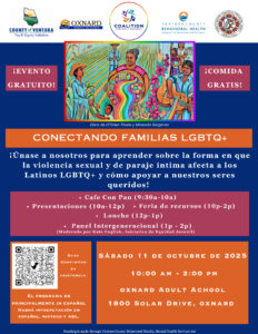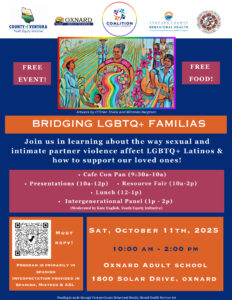The LGBT+ Aging Coalition and the Ventura County Area Agency on Aging (VCAAA) will be co-tabling at the Bridging LGBTQ+ Familias event, set for Saturday, Oct. 11. It will take place at the Oxnard Adult School (1800 Solar Drive in Oxnard) from 10 a.m. to 2 p.m. The program will primarily be done in Spanish.
