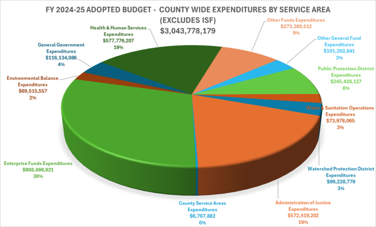 In Ventura County Health/Human Services and Public Safety represent the largest source of our expenditures. This has directly resulted in areas of our County being identified as among the safest and healthiest communities to live in the nation. Many of the services the County provides are mandated by state/federal law resulting in a reduced portion of County revenue that is available for discretionary services that are deemed priorities by you, the tax payer.